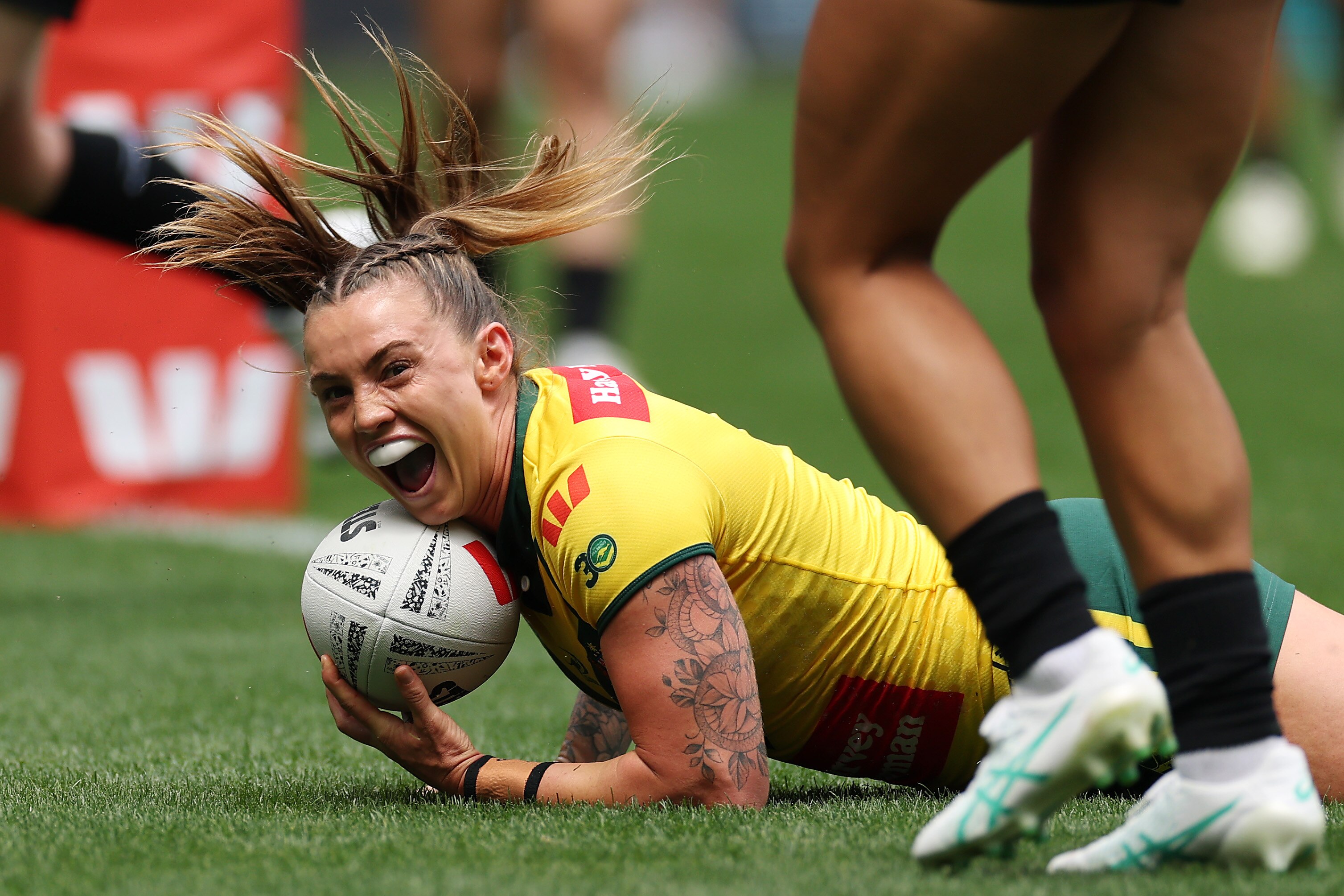 | 63′ | Ellie Johnston (AUS) | Crashed over from dummy-half pass by Olivia Higgins; her first Test try. | Yes (Southwell) | 36-8 |